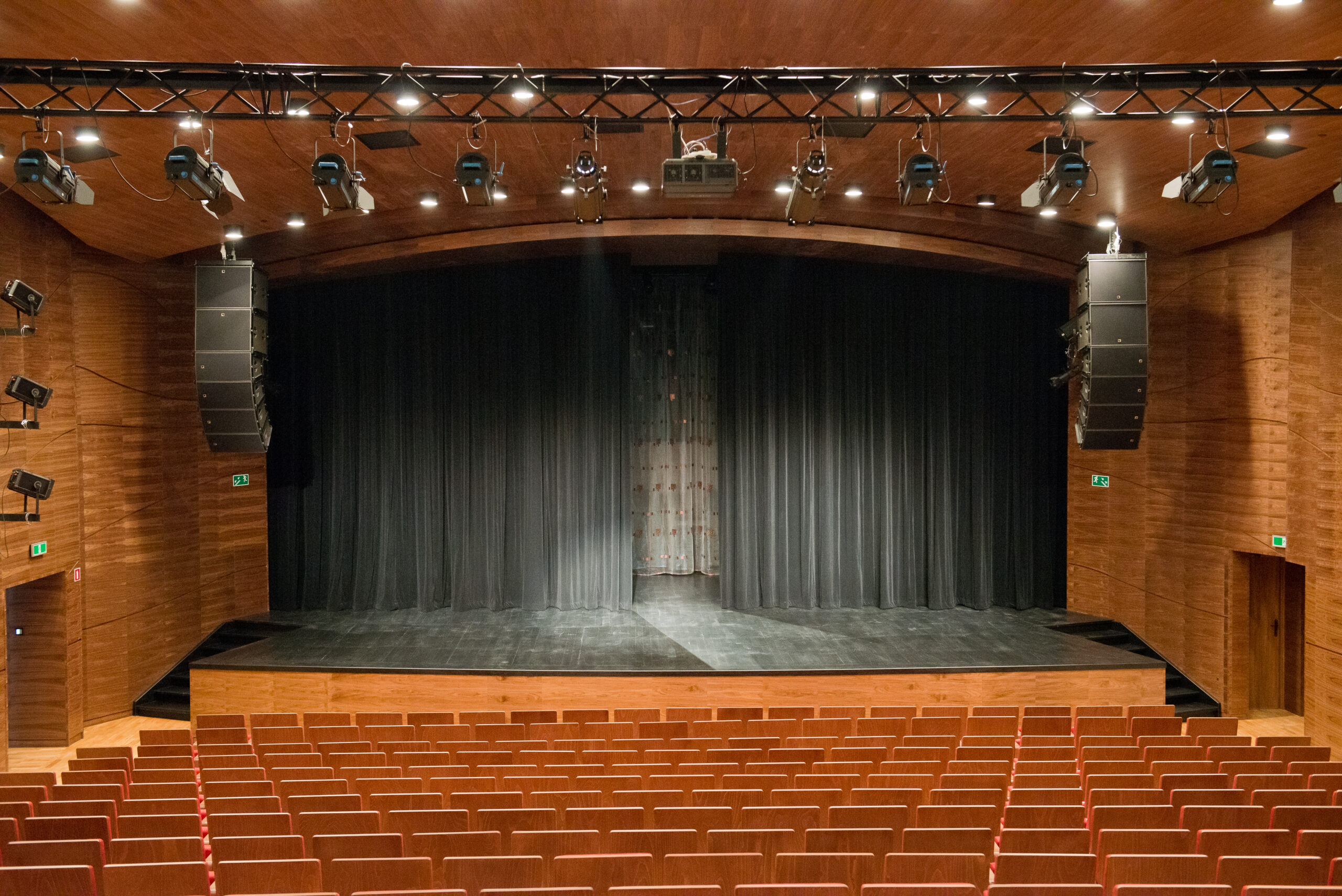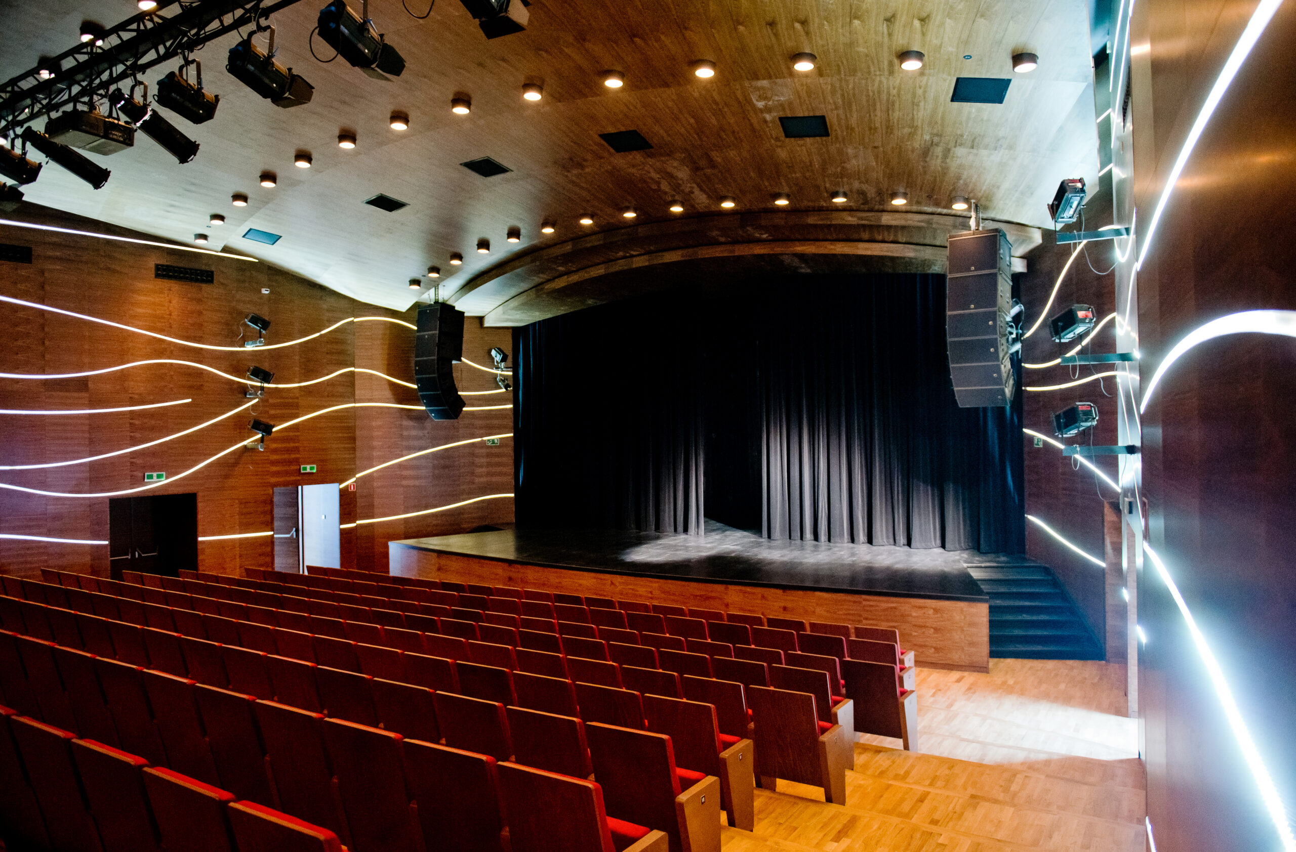 W ramach realizacji odpowiadaliśmy za wyposażenie sali widowiskowej oraz sali multimedialnej. Zakres dostawy i montażu objął kompletny system nagłośnienia dla głównej sali oraz głośniki SEEBURG i5 przeznaczone do sali multimedialnej.