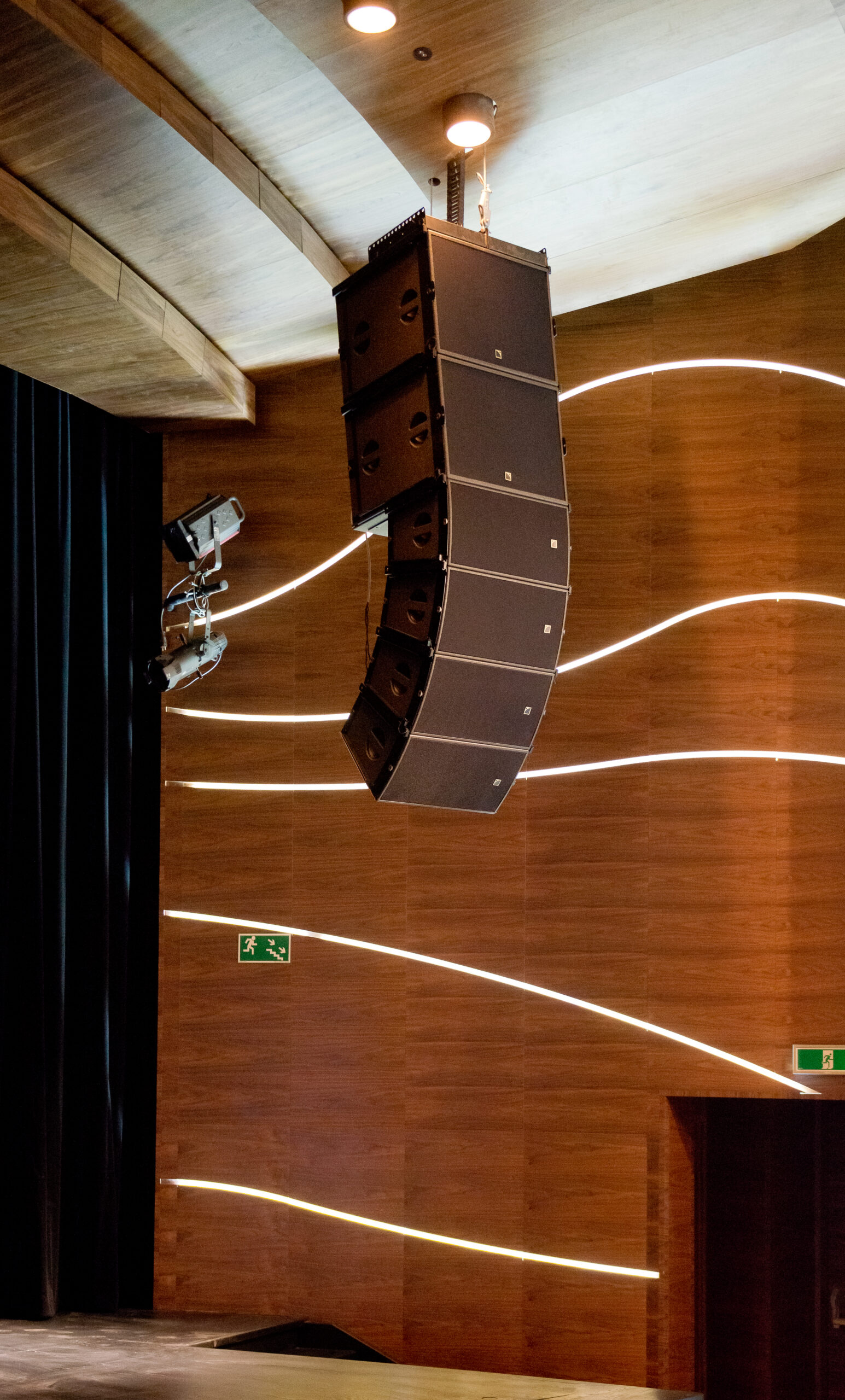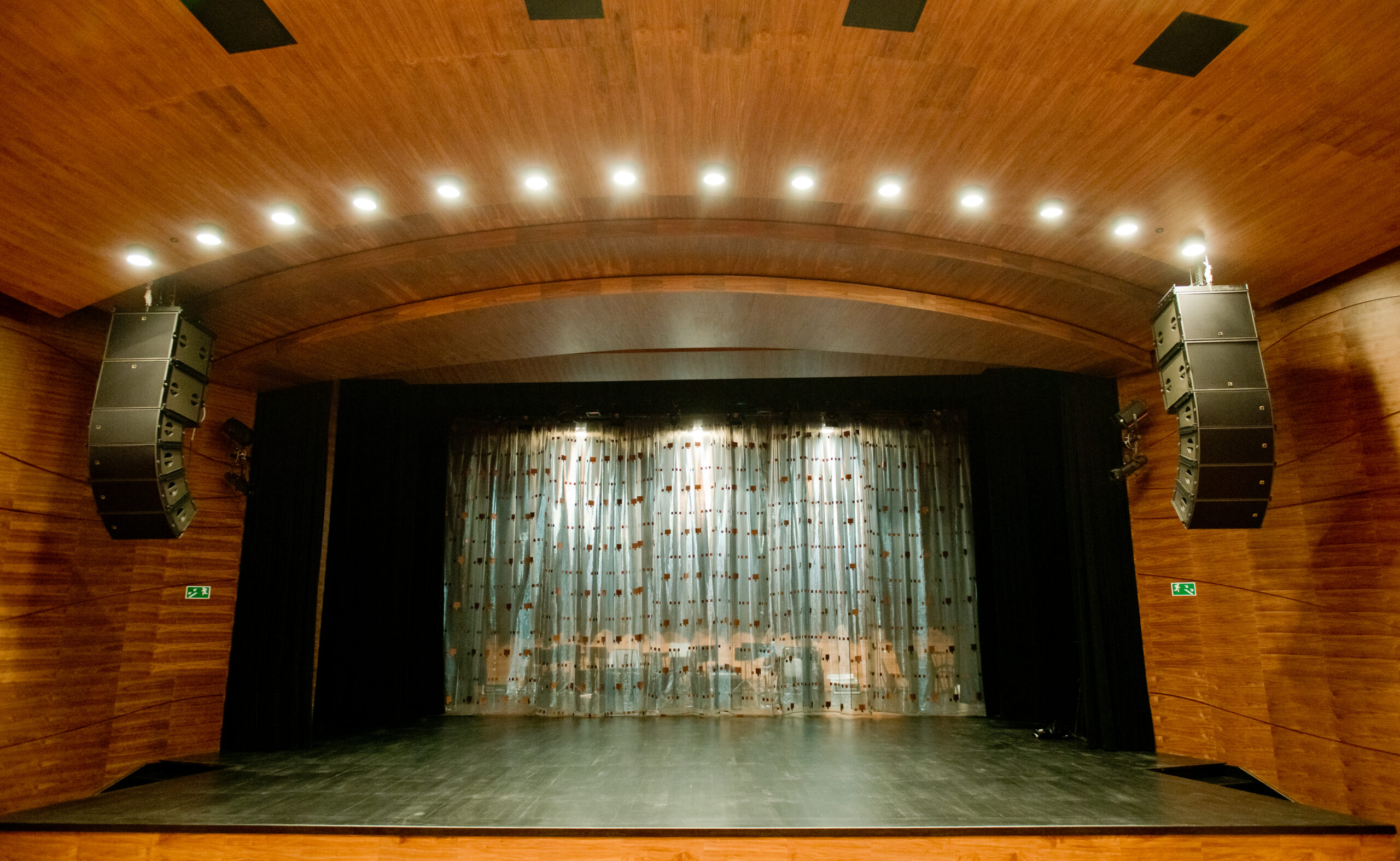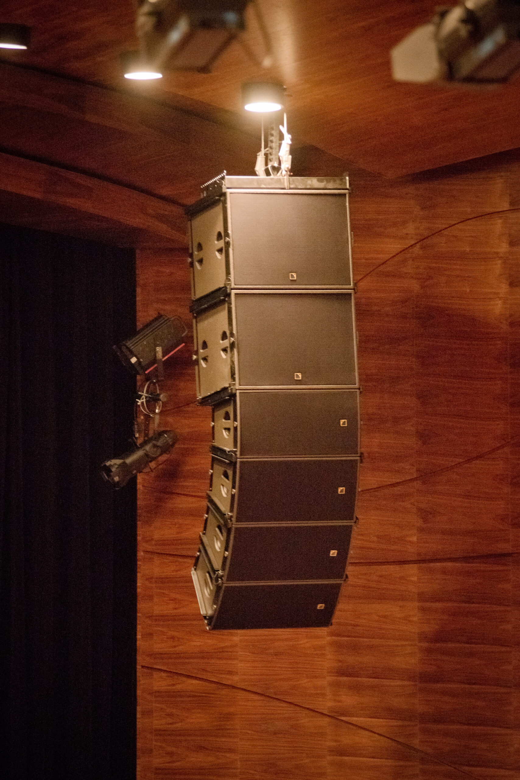 Wyposażenie sali widowiskowej oparto na rozwiązaniach z profesjonalnej klasy riderowej. Główny system nagłośnienia tworzą zestawy L-Acoustics ARCS Focus wraz z subwooferami L-Acoustics SB18m, uzupełnione o frontfill L-Acoustics 5XT, monitory sceniczne L-Acoustics 112P oraz wzmacniacze systemowe L-Acoustics LA8 i LA4. Taki dobór urządzeń pozwala uzyskać wysoką dynamikę, precyzyjne pokrycie widowni i brzmienie odpowiadające wymaganiom nowoczesnej sali widowiskowej.