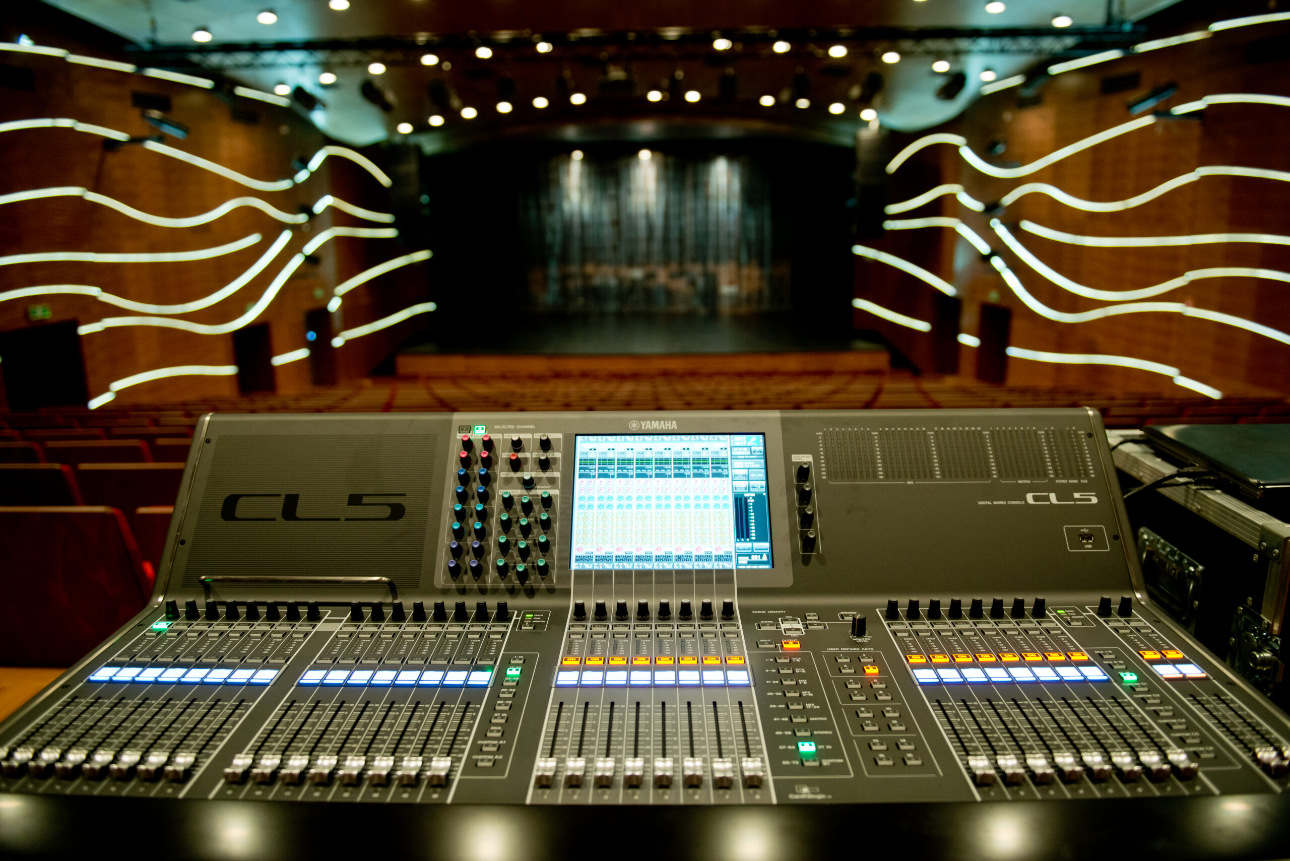 Istotnym elementem wyposażenia są również konsolety cyfrowe Yamaha CL5 i Yamaha QL5 wraz ze stageboxami Yamaha Rio, a także dodatkowa konsoleta Behringer X32 z kartą Dante. System uzupełniają profesjonalne urządzenia peryferyjne i infrastruktura sieciowa, dzięki którym obiekt jest przygotowany do sprawnej pracy podczas koncertów, spektakli, wydarzeń okolicznościowych i realizacji wymagających elastycznej dystrybucji sygnałów.